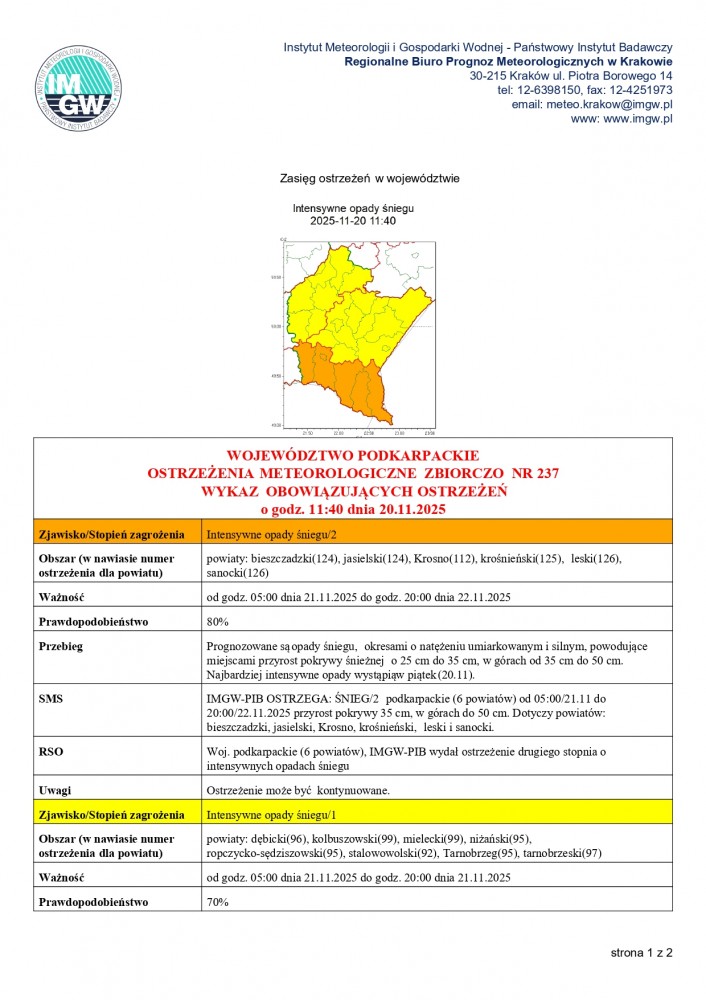 Na terenie Gminy Tyczyn przez intensywne opady śniegu trwają długie przerwy w dostawie energi elektrycznej. Wszystkie usterki i braki zasilania są zgłoszone i na bieżąco usuwane w miarę możliwości przez dostawcę energii.