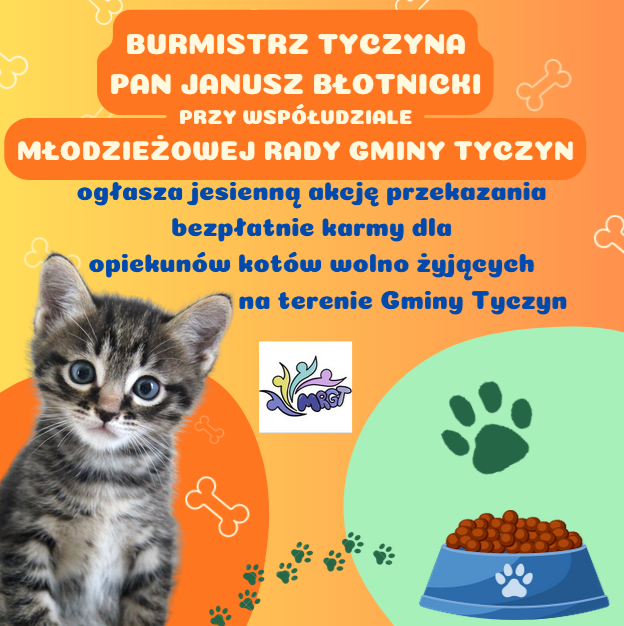 ogłasza jesienną akcję przekazania bezpłatnie karmy dla opiekunów kotów wolno żyjących na terenie Gminy Tyczyn.