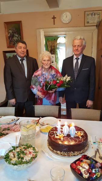 We wtorek 10 grudnia br. najlepsze życzenia dla pani Eugenii Kapłon z okazji setnych urodzin złożyli burmistrz Tyczyna Janusz Skotnicki, przewodniczący Rady Miejskiej w Tyczynie Ryszard Fornal oraz zastępca kierownika Urzędu Stanu Cywilnego w Tyczynie Anna Fil.