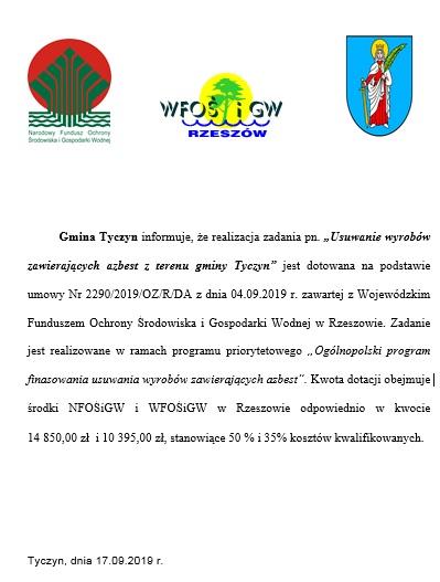 Przedsiębiorstwo Gospodarki Komunalne Eko-Strug Sp. z o.o. w Tyczynie informuje, że wyniki badań wody z wodociągu Tyczyn potwierdziły, że woda jest zdatna do spożycia. Wyniki badań są umieszczone na stronie internetowej Spółki www.ekostrug.pl i Gminy Tyczyn www.tyczyn.pl