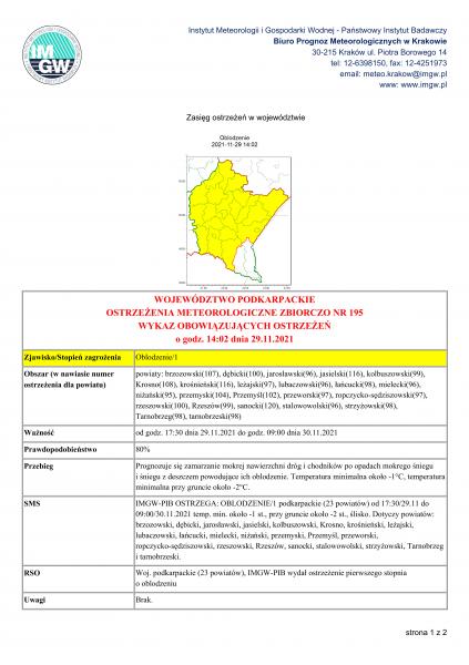 OSTRZEŻENIA METEOROLOGICZNE ZBIORCZO NR 195