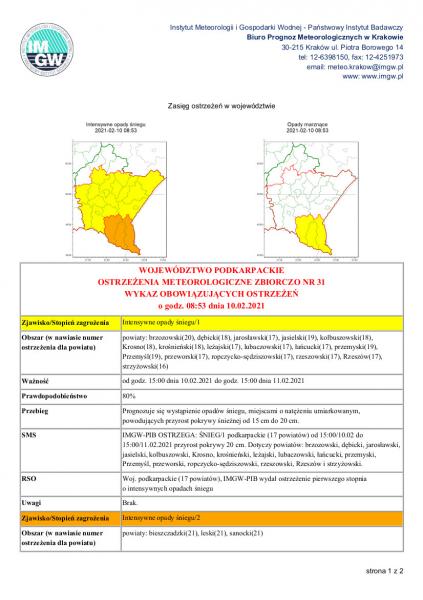 OSTRZEŻENIA METEOROLOGICZNE ZBIORCZO NR 31