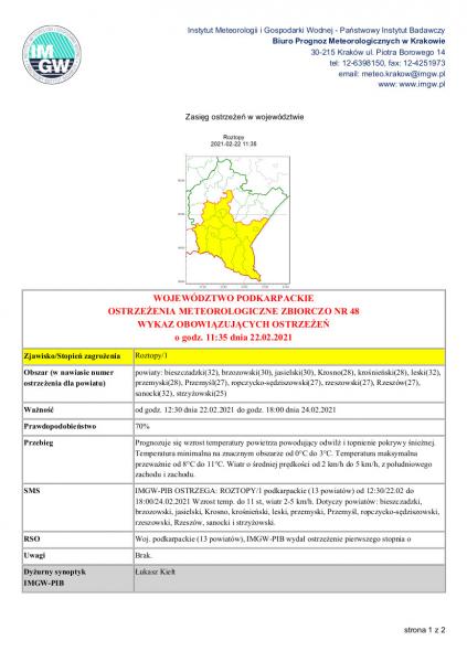 OSTRZEŻENIA METEOROLOGICZNE ZBIORCZO NR 48