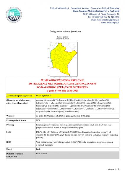 OSTRZEŻENIA METEOROLOGICZNE ZBIORCZO NR 93