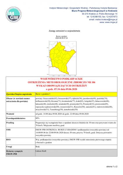 OSTRZEŻENIA METEOROLOGICZNE ZBIORCZO NR 106