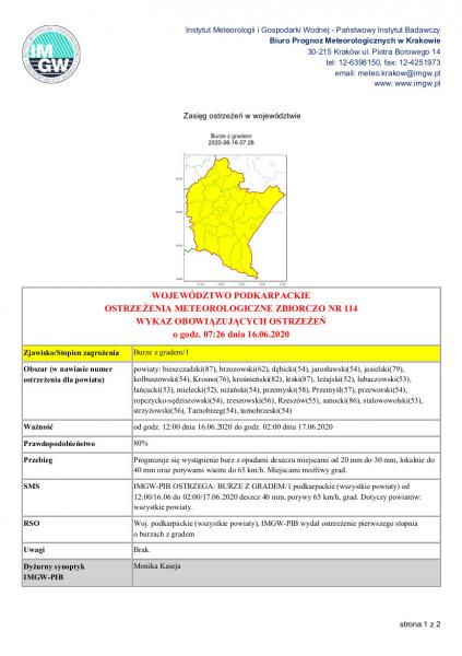 OSTRZEŻENIA METEOROLOGICZNE ZBIORCZO NR 114
