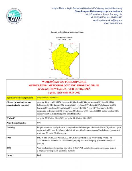 OSTRZEŻENIA METEOROLOGICZNE ZBIORCZO NR 200