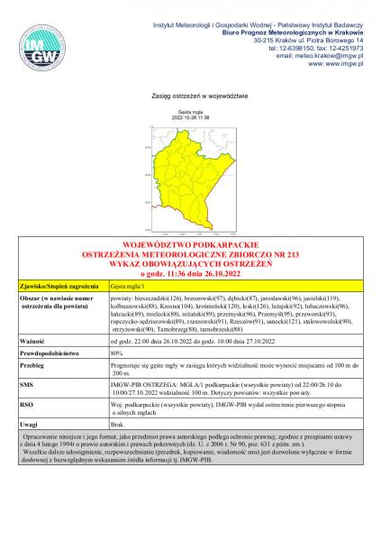 OSTRZEŻENIA METEOROLOGICZNE ZBIORCZO NR 213