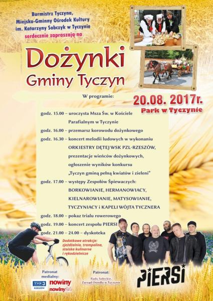 Jak co roku mieszkańcy Gminy Tyczyn dziękowali  Bogu za tegoroczne plony podczas tradycyjnych Dożynek Gminnych. Uroczystości rozpoczęła msza święta w Kościele p.w. Św. Katarzyny i Trójcy Przenajświętszej w Tyczynie.