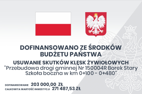 Obrazek Zadanie zrealizowane przy udziale dofinansowania z budżetu państwa na usuwanie skutków klęsk żywiołowych. więcej