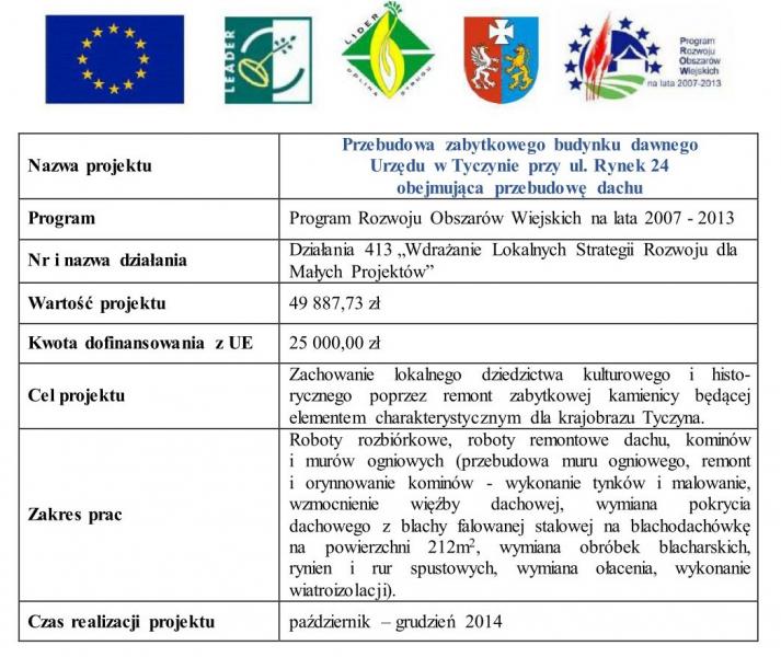 Przebudowa zabytkowego budynku dawnego Urzędu w Tyczynie przy ul. Rynek 24 obejmująca przebudowę dachu