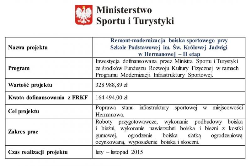 Remont-modernizacja boiska sportowego przy Szkole Podstawowej im. Św. Królowej Jadwigi w Hermanowej – II etap