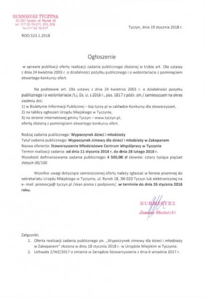 - na tablicy ogłoszeń w siedzibie Urzędu Miejskiego w Tyczynie,