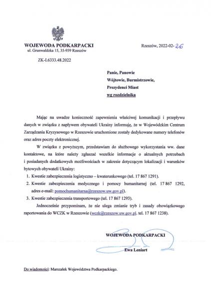 Obrazek W Wojewódzkim Centrum Zarządzania Kryzysowego w Rzeszowie uruchomnione zostałt dedykowane numery telefonów oraz poczty elektronicznej. więcej