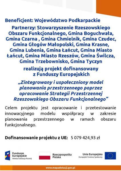 W ramach Inicjatywy Catching–up Regions 2 w wyniku której realizowany jest projekt pn. Zintegrowany i uspołeczniony model planowania przestrzennego poprzez opracowanie Strategii Przestrzennej Rzeszowskiego Obszaru Funkcjonalnego uczestniczyły: Komisja Europejska, Bank Światowy, Ministerstwo Inwestycji i Rozwoju oraz Województwo Podkarpackie.
