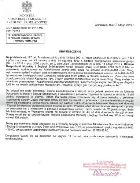 Obwieszczenie Ministra Gospodarki Morskiej i Żeglugi Śródlądowej
